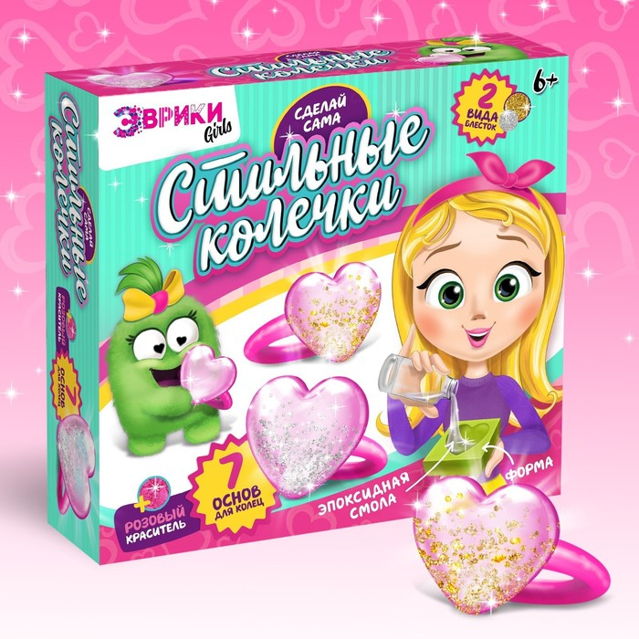С набором для опытов «Стильные колечки» малышка проведёт увлекательный эксперимент и создаст уникальные украшения из эпоксидной смолы!