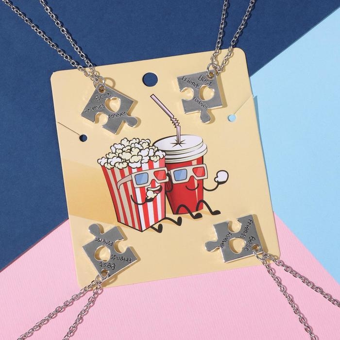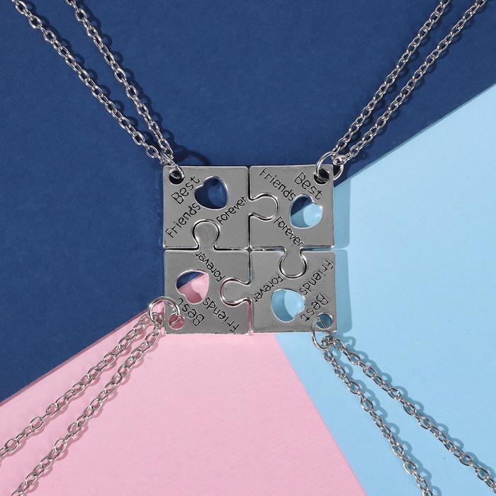 Кулоны «Неразлучники» пазлы квадрат, цвет серебро, 45 см