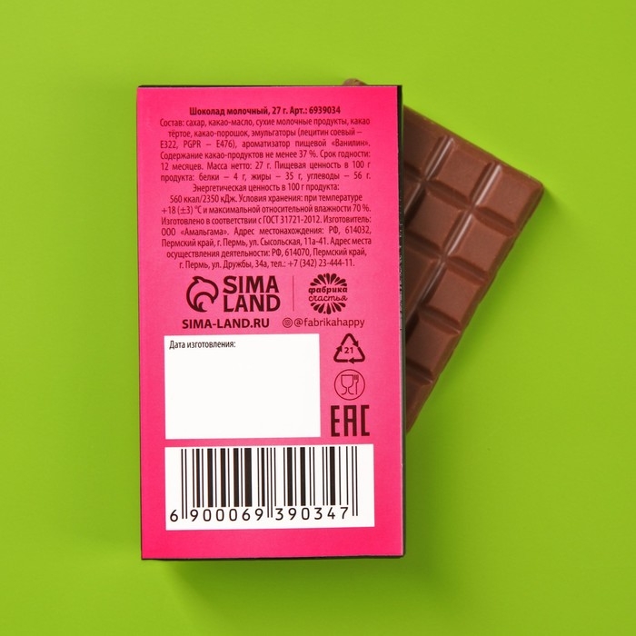Шоколад молочный «От розовых соплей»: 27 г.