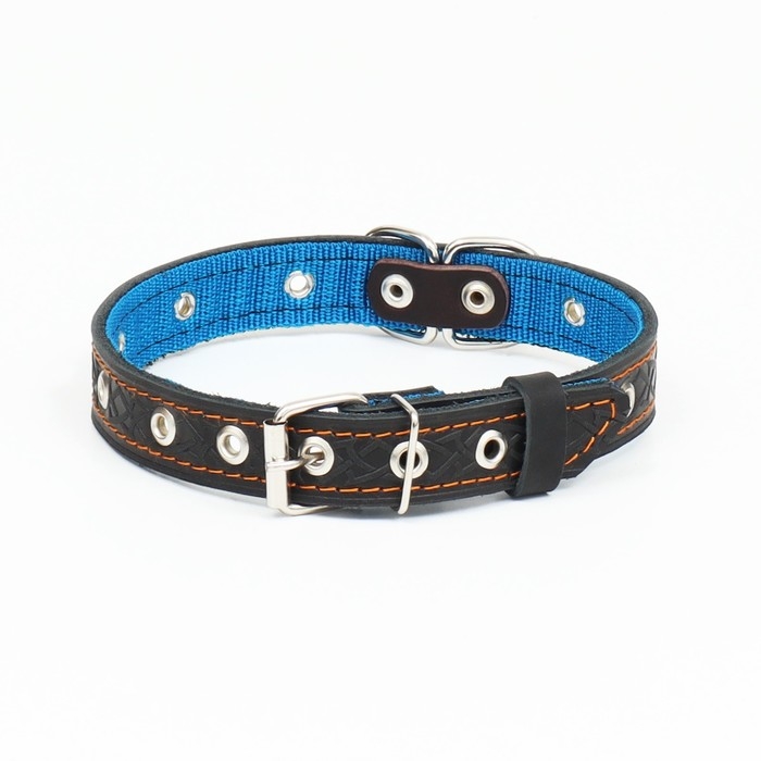 Ошейник комбинированный кожа/брезент, безразмерный, 54 х 2.5 см, ОШ 17-45 см, синий