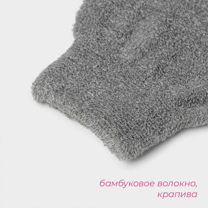 Мочалка-варежка для тела массажная Доляна, 21×11,5 см, бамбуковый уголь, китайская крапива, цвет серый