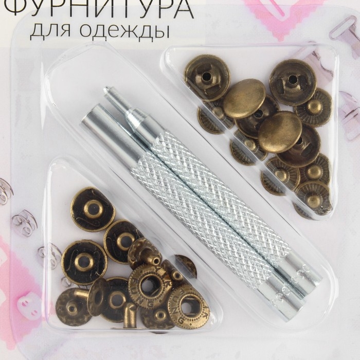 Набор S-образных кнопок с установщиком пригодится для создания или ремонта изделий из материалов разной плотности.