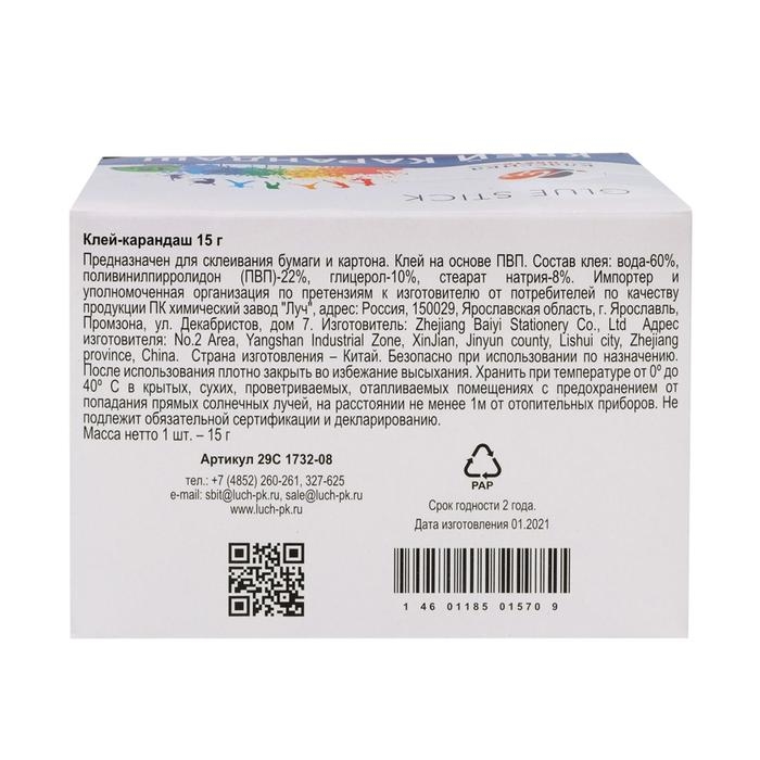 Клей-карандаш ПВП 15г, Мульти-Пульти "Чебурашка", с цветным индикатором