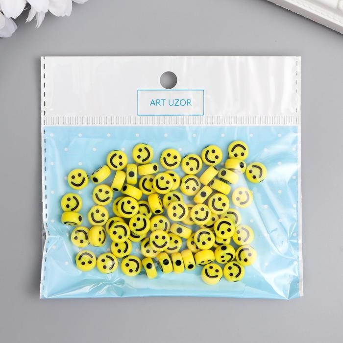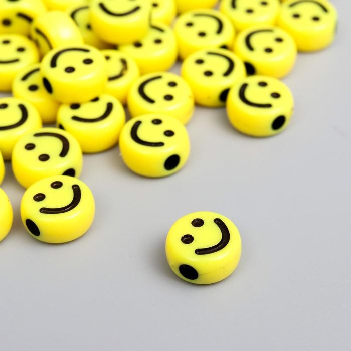 Бусины для творчества пластик "Жёлтый смайл" круг набор 20 гр 0,5х1х1 см
