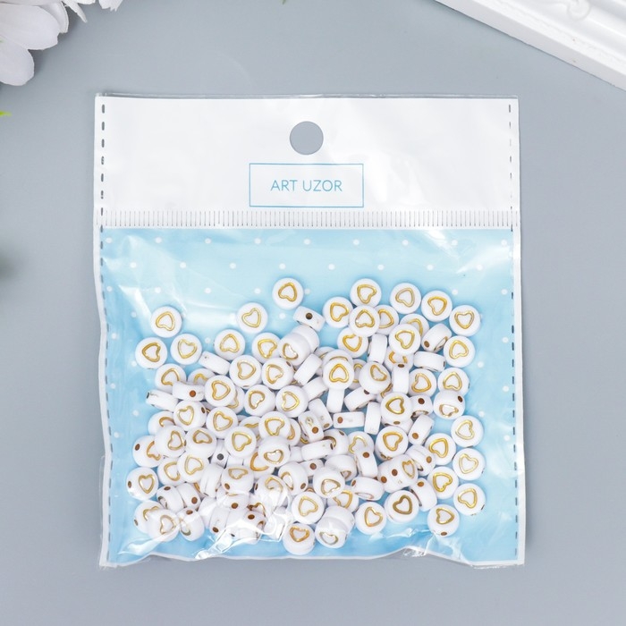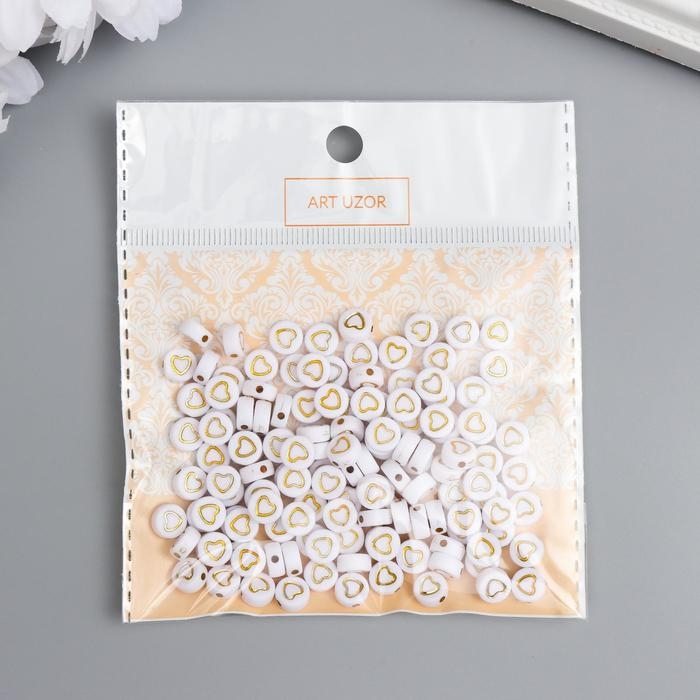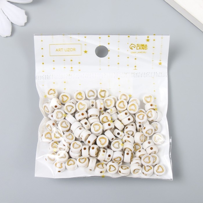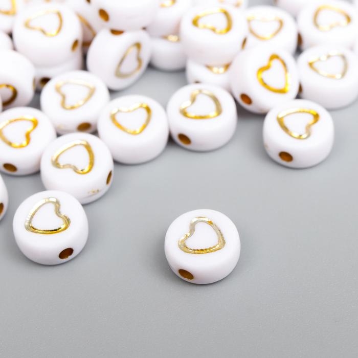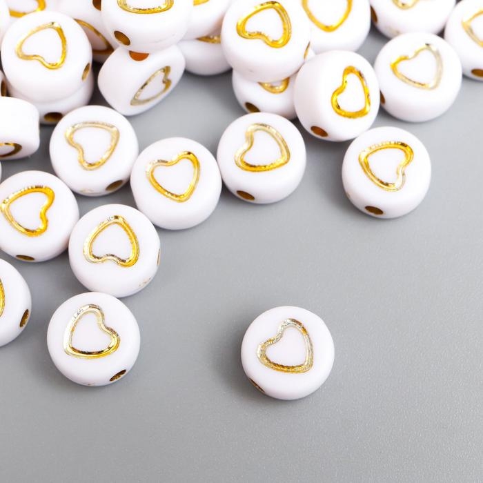 Набор бусин для творчества пластик "Золотое сердечко в круге" белые 20 гр 0,3х0,7х0,7 см