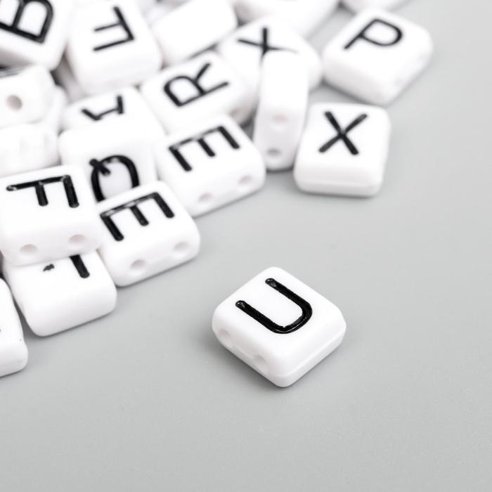 Бусины для творчества пластик "Чёрные английские буквы" белые набор 20 гр 0,4х0,8х0,8 см