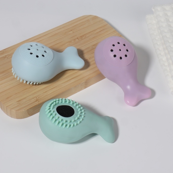 Щётка для умывания «Кит», силиконовая и поролоновая, 9,8 см, цвет МИКС