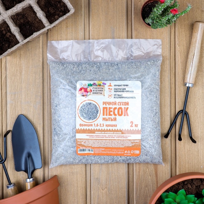 Речной песок "Рецепты дедушки Никиты", сухой, фр 1,6-2,5, крошка, 2 кг