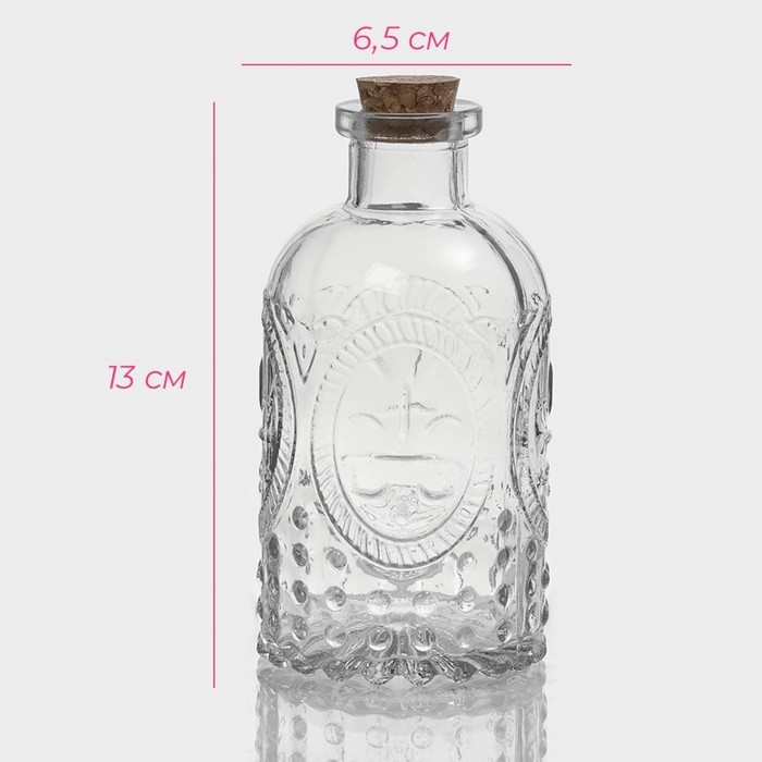 Банка стеклянная для хранения сыпучих продуктов Доляна «Парфе. Династия», 250 мл, 6,5×13 см, с пробковой крышкой