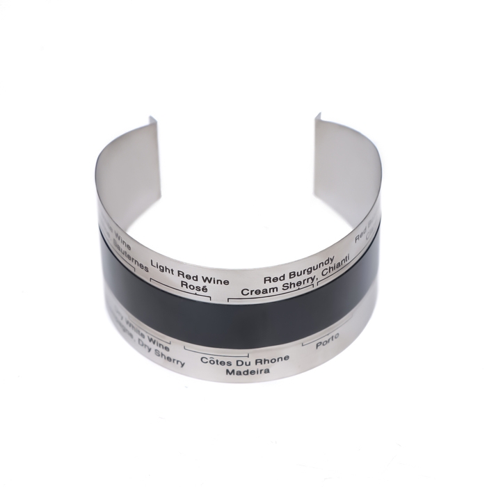 Термометр-браслет очень удобен в использовании. Его можно надевать прямо на бутылку, то есть нет необходимости открывать бутылку с вином до того, как нужная температура будет достигнута. Браслет незамкнутый, поэтому идеально сядет на бутылку любой формы. Термочувствительный материал находится на внутренней части браслета. Устройство выполнено из безопасных и нетоксичных материалов. Рекомендуется изменять температуру вина непосредственно перед его подачей.