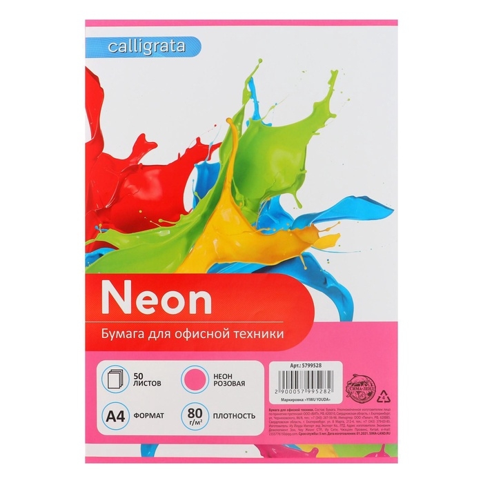 Бумага цветная А4, 50 листов, НЕОН РОЗОВАЯ, 80 г/м2