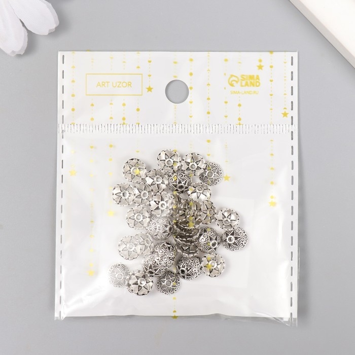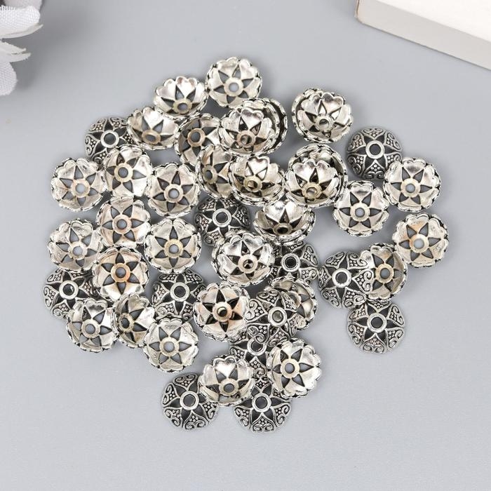 Декор шляпка для бусин "Цветок-полукруг" серебро 0,8х0,8 см набор 50 шт