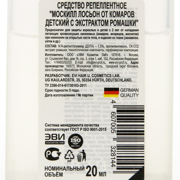 Лосьон-спрей от комаров "Москилл", детский, с экстрактом ромашки, 20 мл