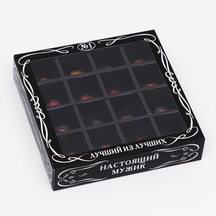 Коробка для конфет, 16 шт, "Мужская", черная, 17,7 х 17,7 х 3,8 см