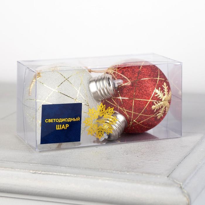 Набор ёлочных шаров «Золотистые нити» 2 шт., батарейки, 1 LED, свечение тёплое белое