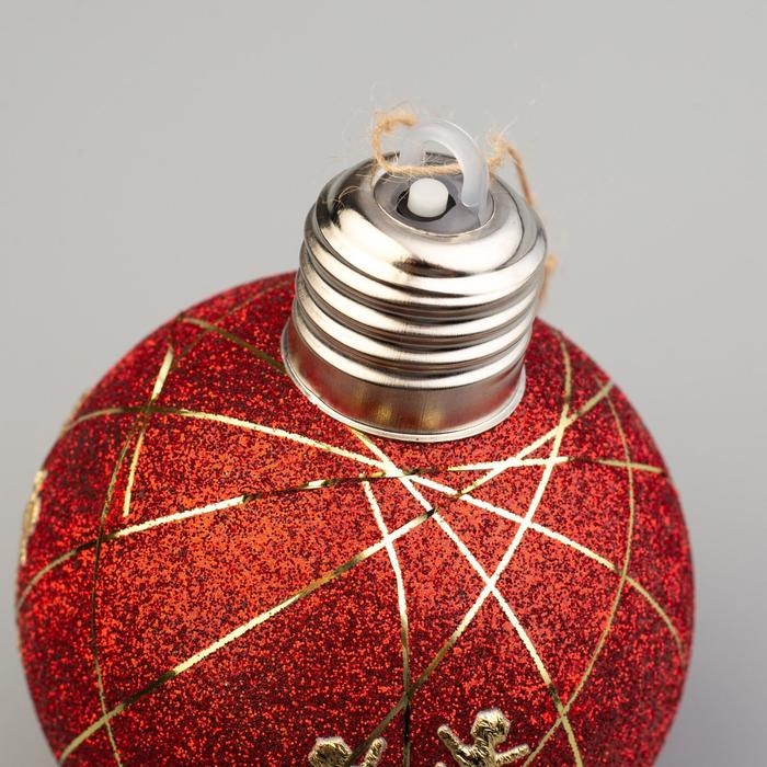 Ёлочный шар «Жёлудь красный», батарейки, 4 LED, свечение тёплое белое
