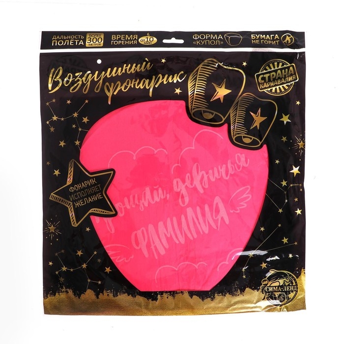 Небесный фонарик «Прощай, девичья фамилия» купол, розовый