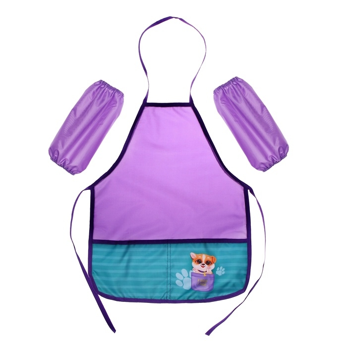 Фартук для труда + нарукавники, 485 х 395/250 х 160 мм, рост 116-146 см, Calligrata "Милый пёсик", сиреневый