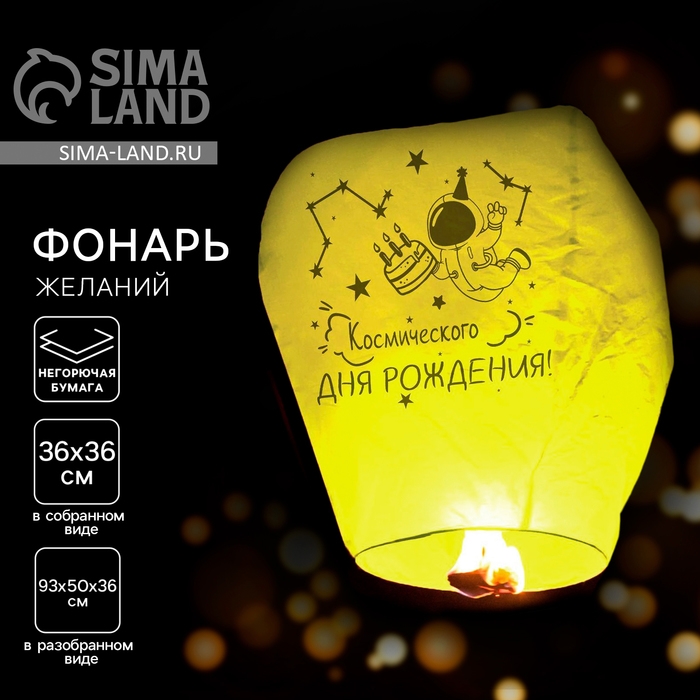 Фонарик желаний «Космического дня рождения» купол, жёлтый