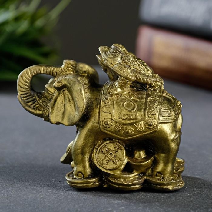 Фигура "Слон на деньгах" состаренное золото, 10х8,5х6см