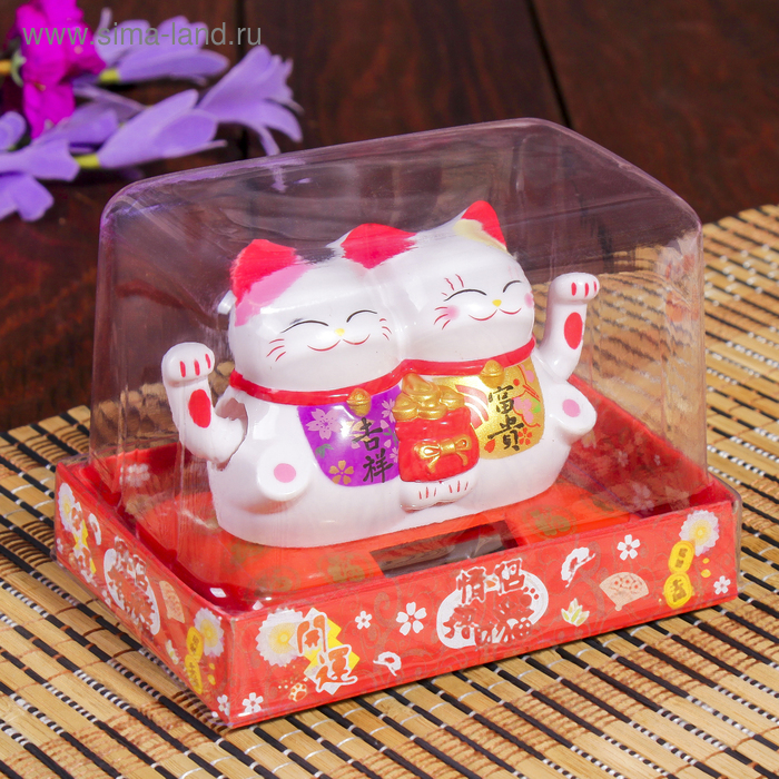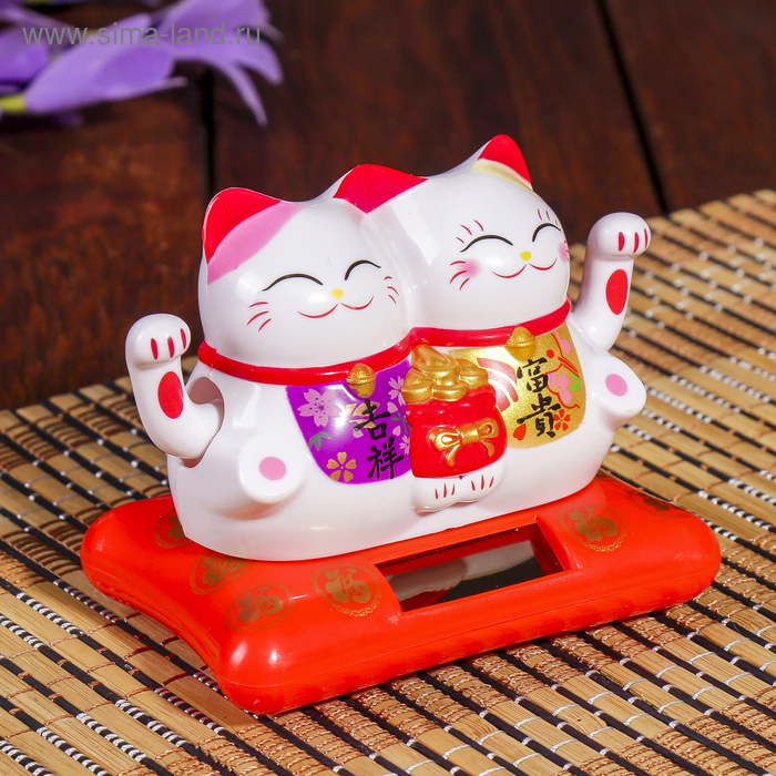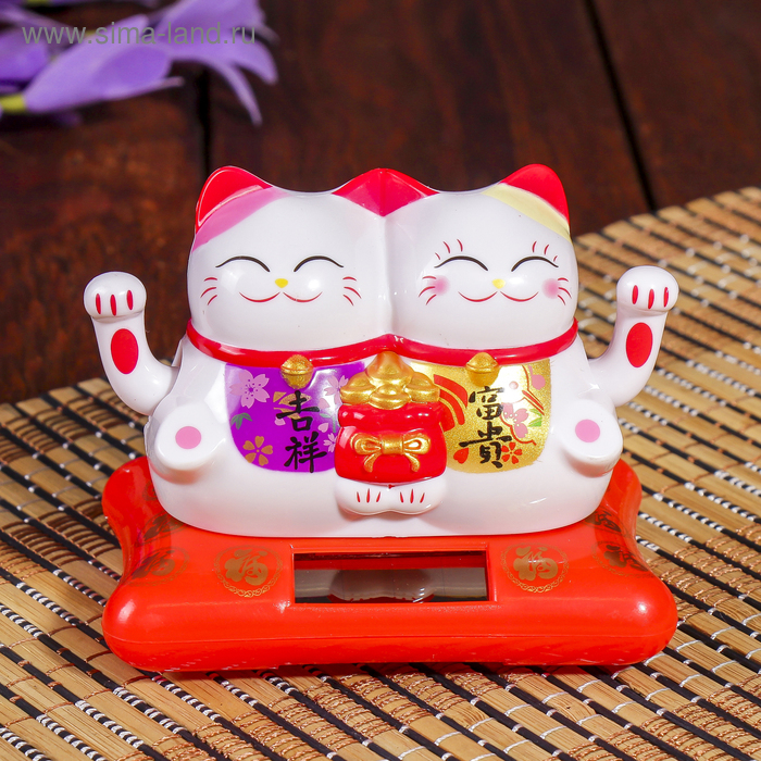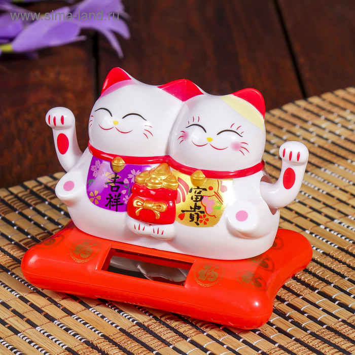 Маятник пластик от солнечной батареи "Два кота Манэки-нэко с мешком золота" 6,5х8,5х5,5 см
