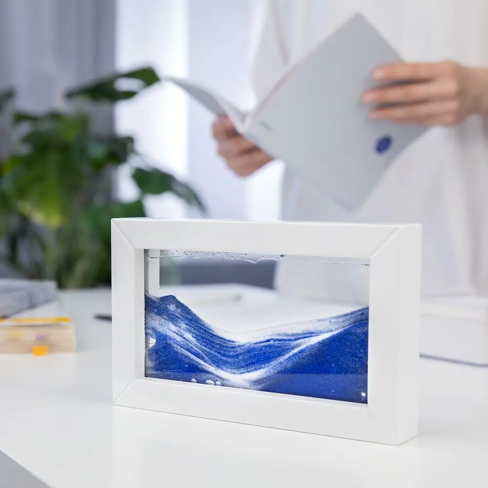 Песочный антистресс — это живая картина, в которой струящиеся в воде цветные песчинки создают неповторимые пейзажи. Наблюдение за невероятными образами позволит расслабиться и отвлечься от дел, успокоив глаза и мысли.
