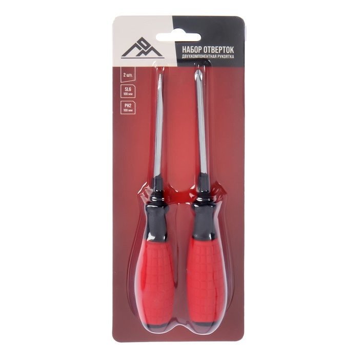 Набор отверток ЛОМ, обрезиненные рукоятки, PH2/SL6 х 100 мм, 2 шт.