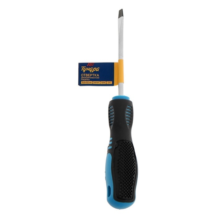 Отвертка шлицевая ТУНДРА, CrV, хром, магнит, двухкомпонентная рукоятка, SL6 х 100 мм