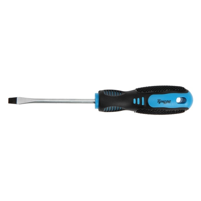 Отвертка шлицевая ТУНДРА, сатин, магнит, двухкомпонентная рукоятка, SL5 х 100 мм