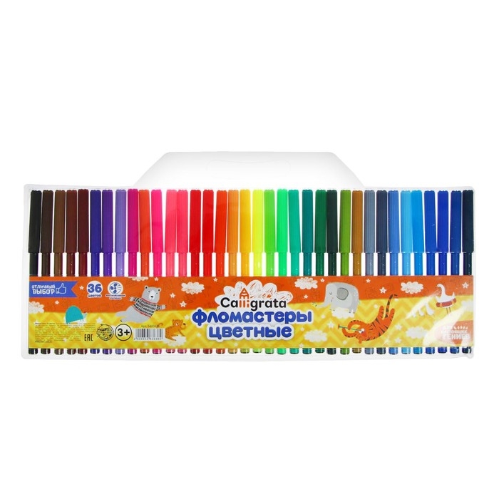 Набор фломастеров Calligrata содержит 36 ярких и насыщенных цветов. Вентилируемый колпачок обеспечивает безопасное рисование для ребенка . Идеально подходят для детей от 3-х лет и для тех, кто только начинает свой творческий путь. Фломастеры состоят из пластика, чернил. Упаковка представлена в виде PVC пакета. Благодаря фломастерам Calligrata Вы сможете воплотить все свои творческие фантазии в реальность.