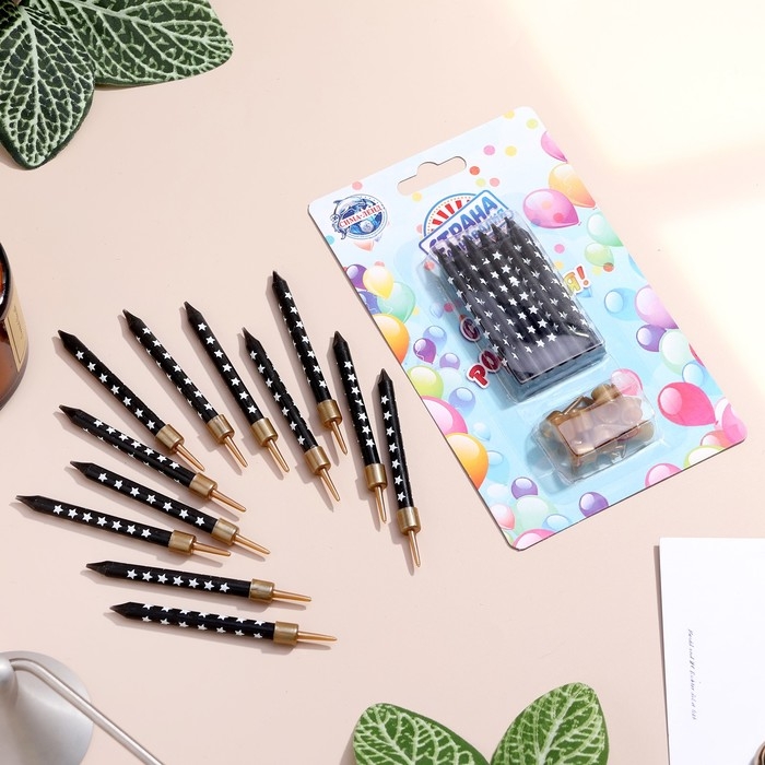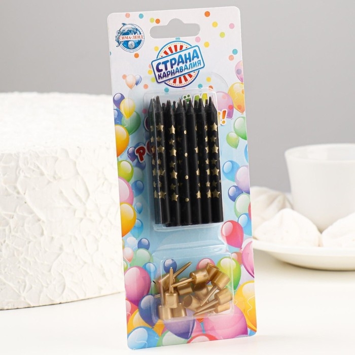 Свечи в торт "Золотая звезда", 6 см, 12 шт, чёрные