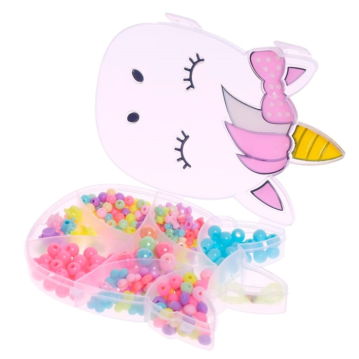 Размер бисера прекрасно подходит для детских ручек, поэтому ребёнку будет удобно нанизывать детали на леску.