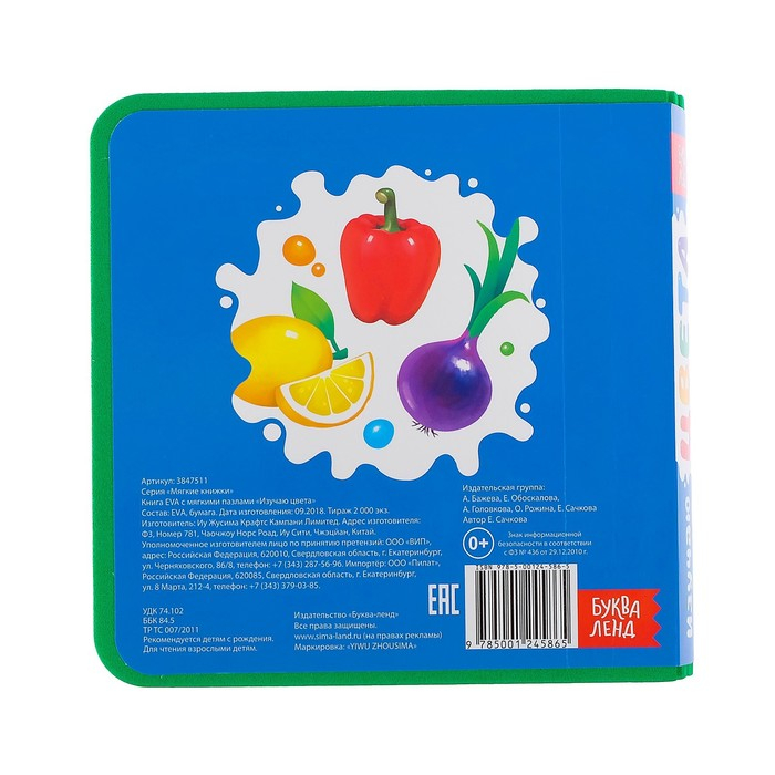 Книжка с мягкими пазлами EVA «Изучаю цвета», 12 стр.