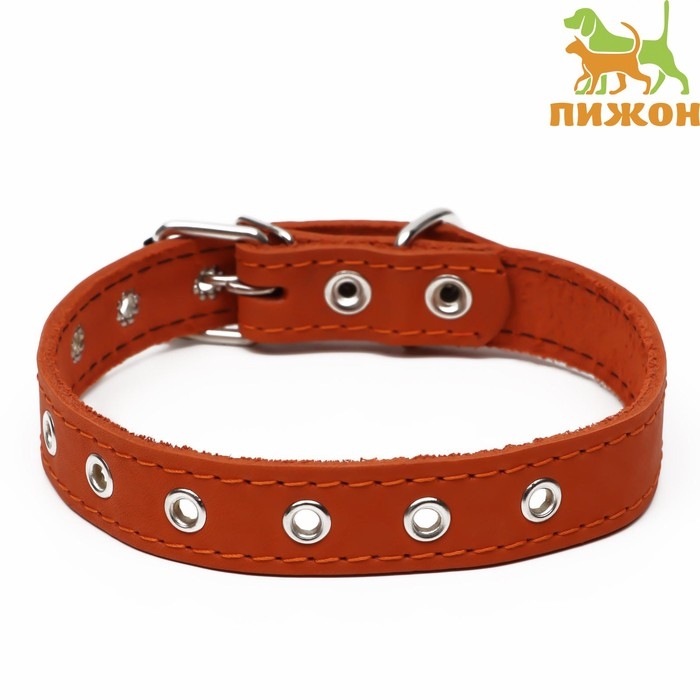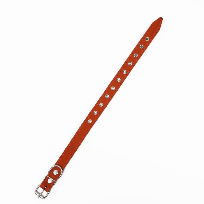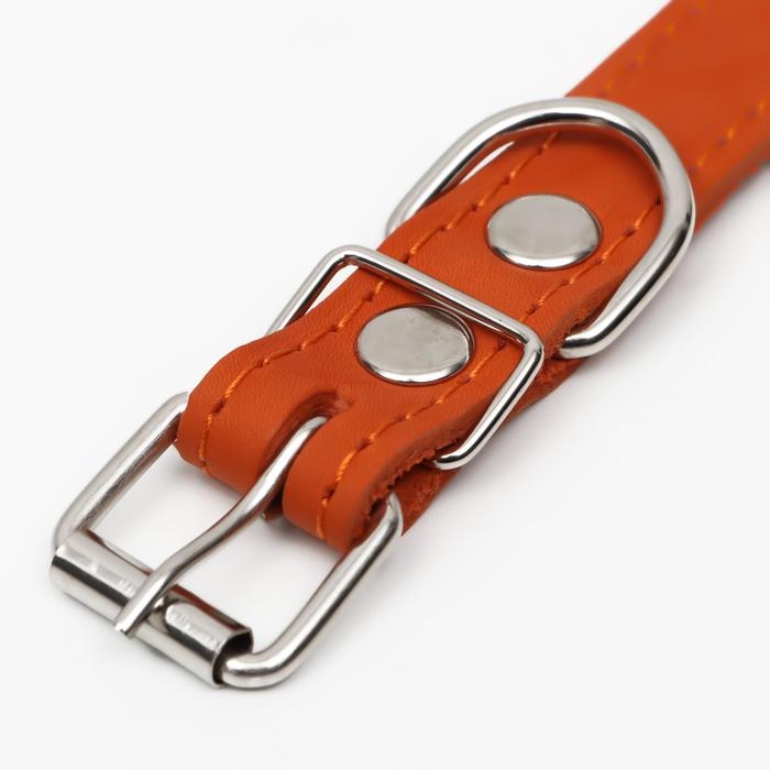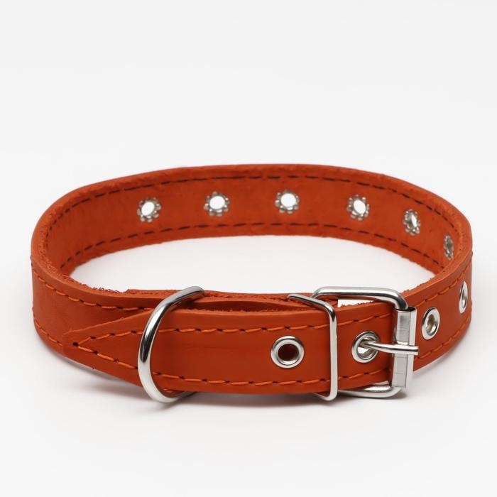 Ошейник кожаный однослойный, безразмерный, 56 х 2,5 см, ОШ 17-44 см, оранжевый