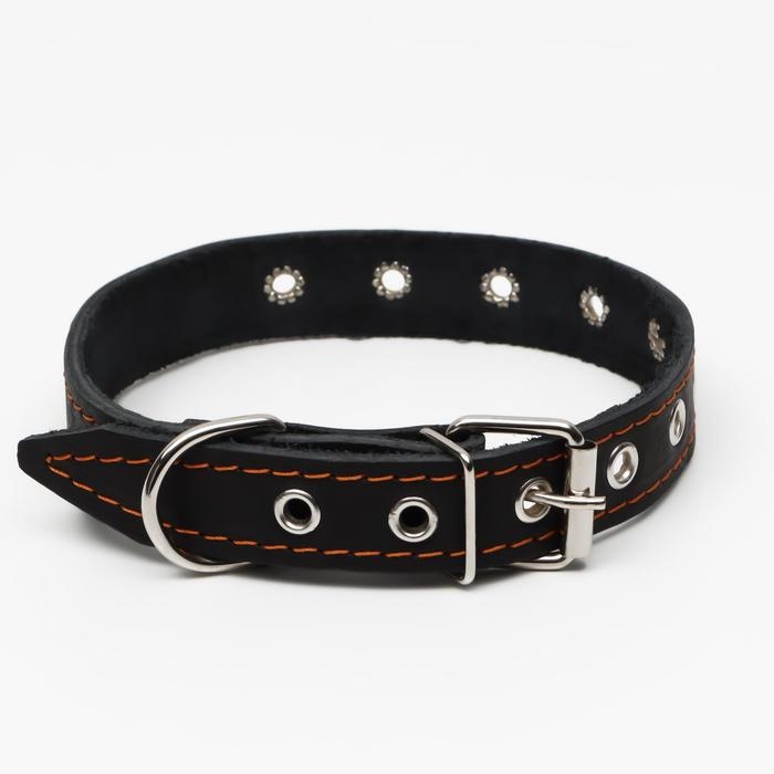 Ошейник кожаный однослойный, безразмерный, 56 х 2.5 см, ОШ 17-44 см, чёрный