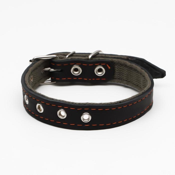 Ошейник кожаный на синтепоне, 56 х 2.5 см, ОШ 35-45 см, коричневый