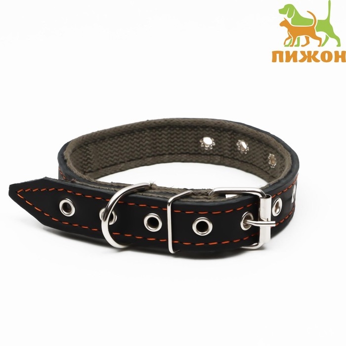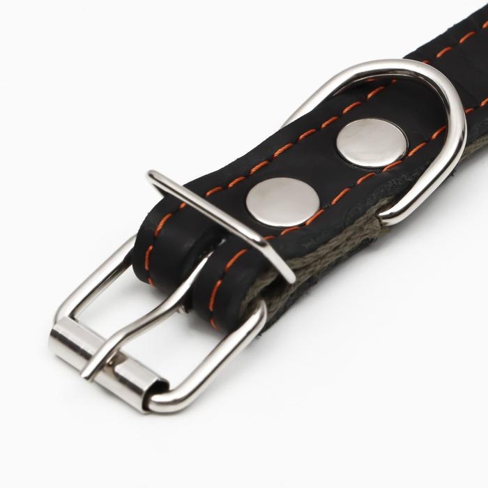 Ошейник комбинированный кожа/брезент, 53 х 2.5 см, ОШ 35-45 см, чёрный