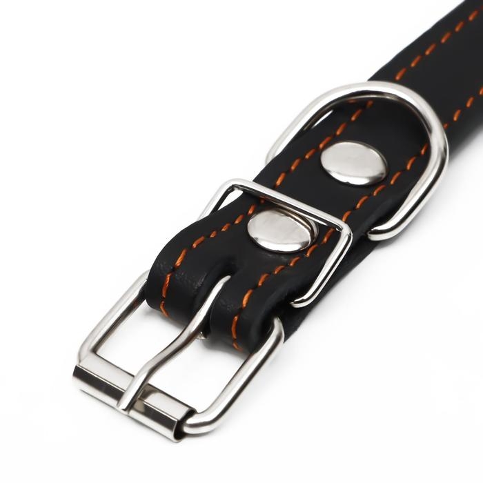 Ошейник кожаный усиленный капроном с полукольцом, 55 х 2,5 см, ОШ 27-53 см, чёрный