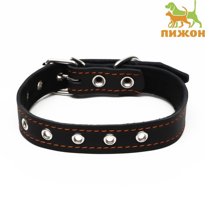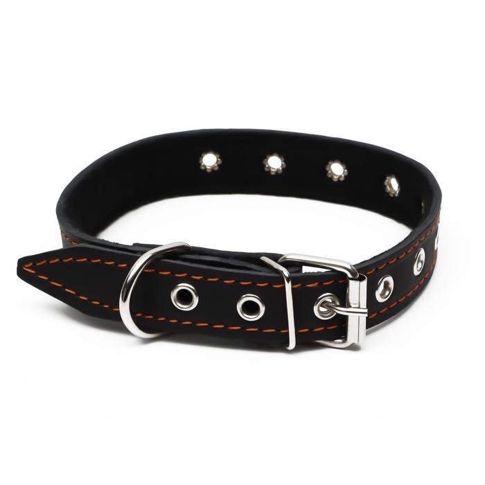 Ошейник кожаный на синтепоне, безразмерный, 54 х 2,5 см, ОШ 19-47 см, чёрный