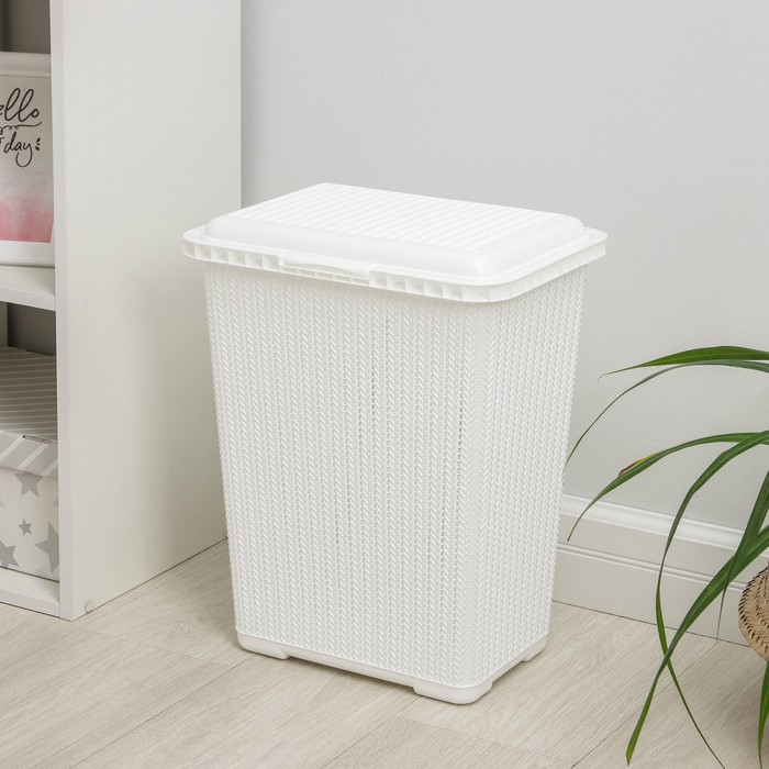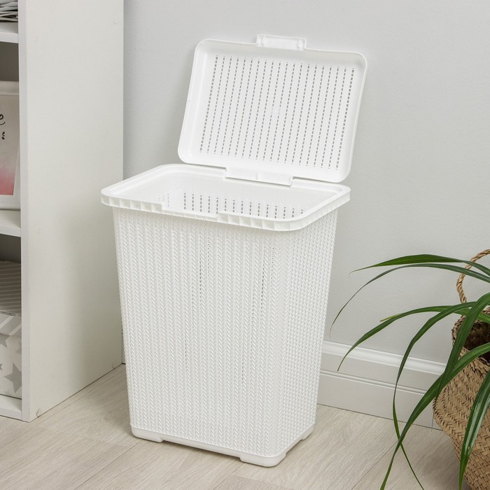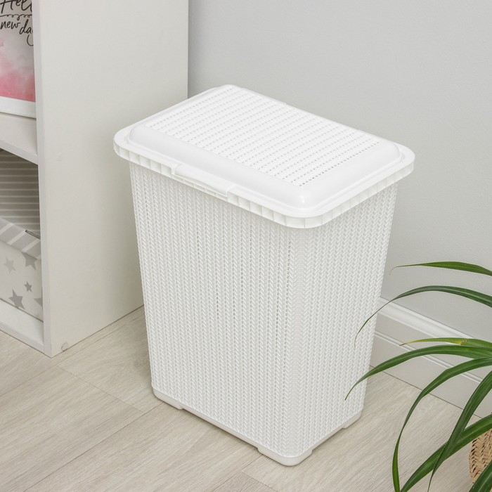 Корзина бельевая с крышкой «Вязаное плетение», 25 л, 37×27,5×46,5 см, цвет белый