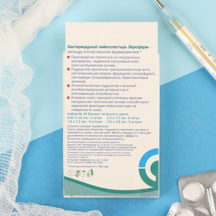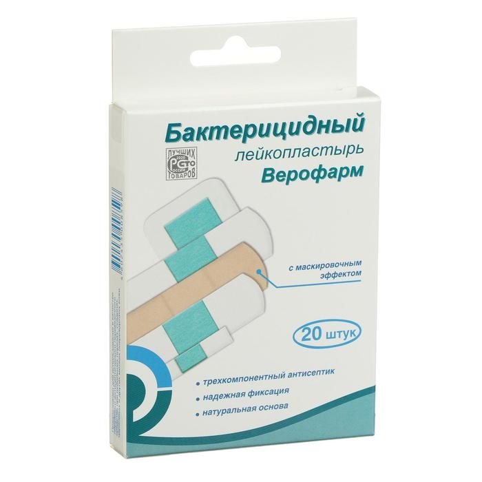 Лейкопластырь Верофарм бактерицидный набор 20 шт на тканной основе, телесные, баланс