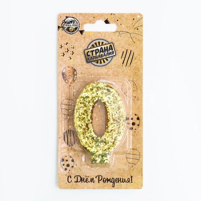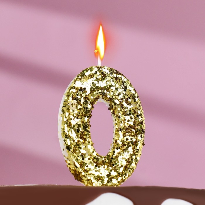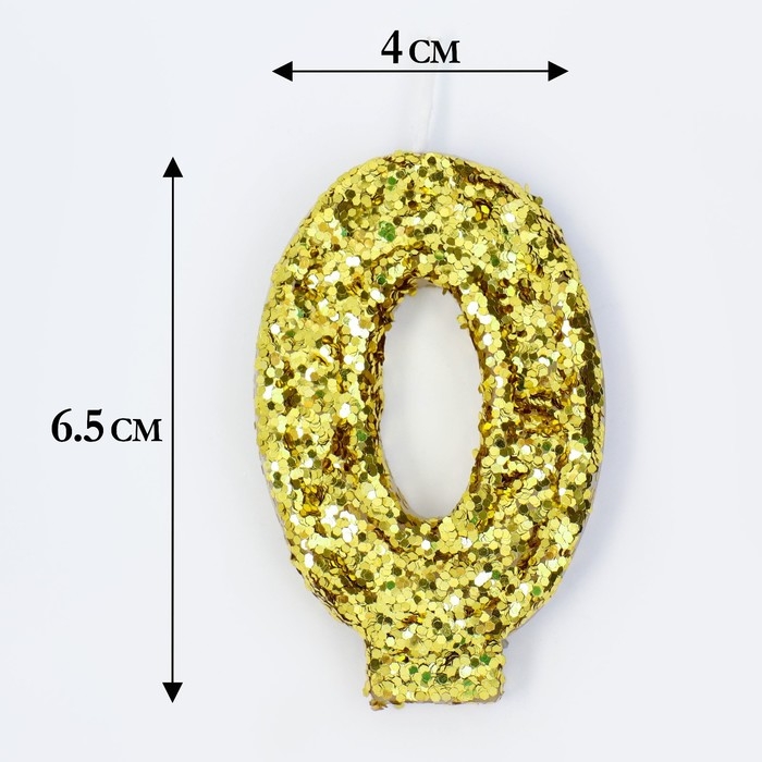 Свеча в торт «Блестки», цифра "0", золото, 5,5 см