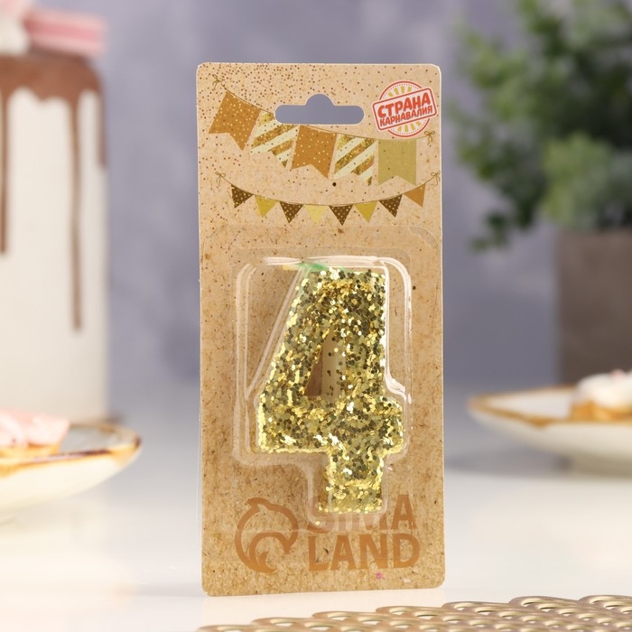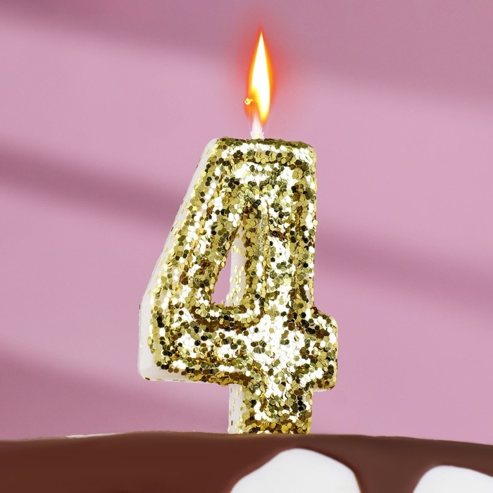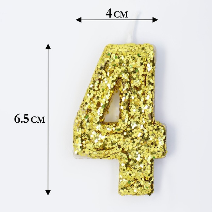 Свеча в торт «Блестки», цифра "4", золото, 6.5х4
