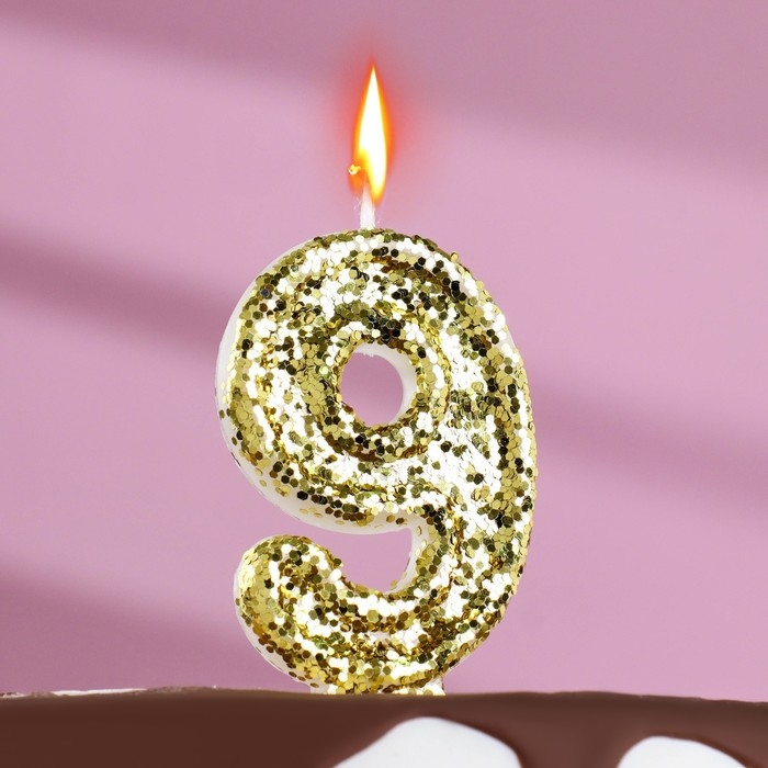 Свеча в торт «Блестки», цифра "9", золото,6.5х4
