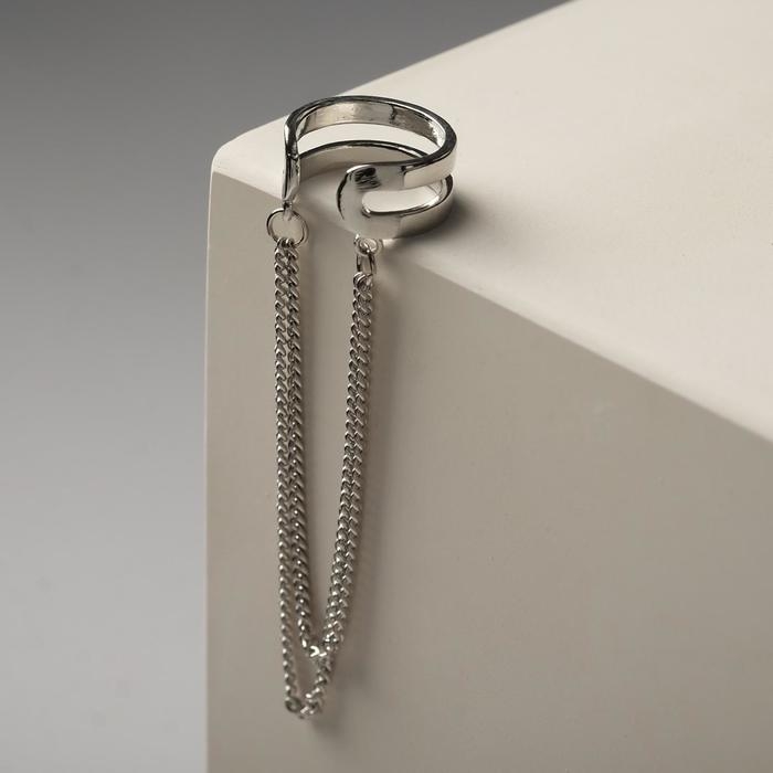 Серьга «Кафф» две полоски с цепочками, цвет серебро