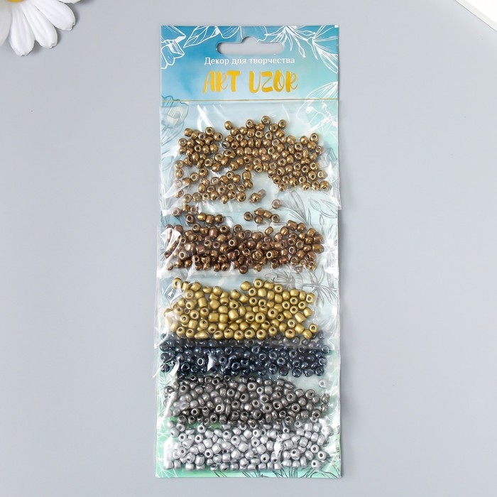 Бисер круглый размер 6/0 "Серебро, золото, бронза и чёрный" 6 цветов х 10 грамм