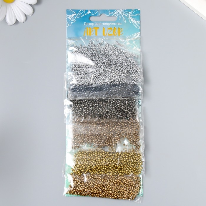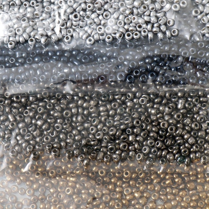 Бисер круглый размер 12/0 "Серебро, золото, бронза и чёрный" 6 цветов х 10 грамм