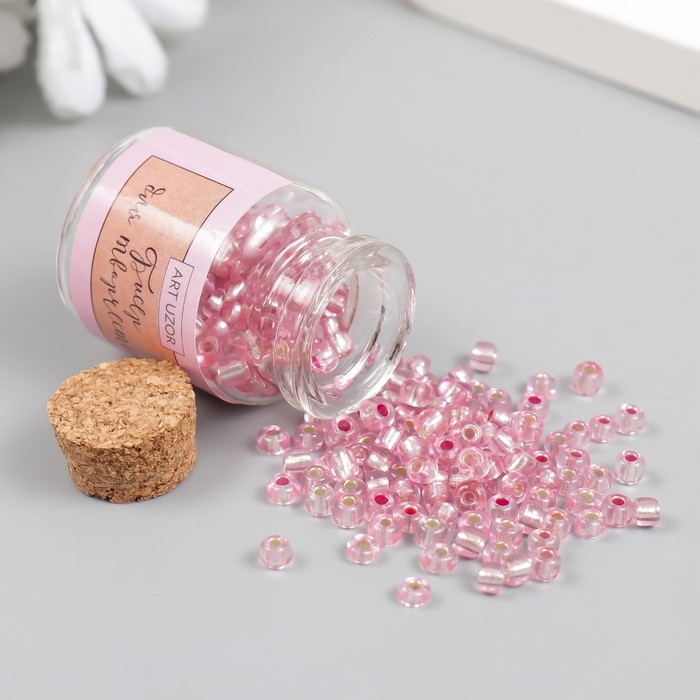 Бисер круглый 6/0 в бутылочке "Розовый" прозрачно-цветной 20 гр