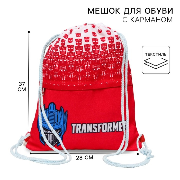 Мешок для обуви с карманом, 28х37 см, Трансформеры
