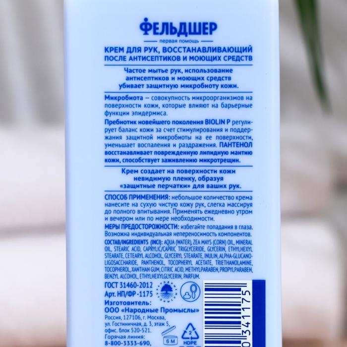 Крем для рук Фельдшер восстанавливающий после антисептиков и моющих средств, 180 мл